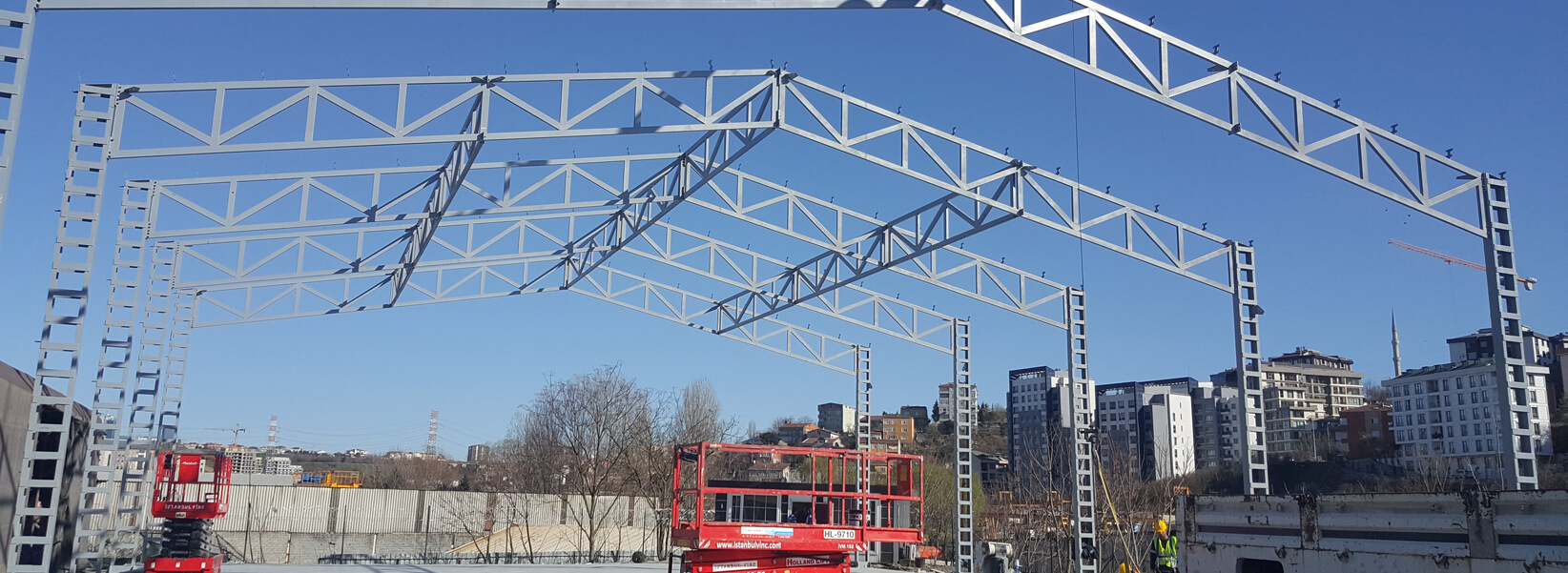 Çelik fabrika binaları, çelik çatı, tonoz çatı, çelik köprü, pilon, tesis içi çelik platform imalat ve montajını projelendirerek istenilen zaman ve kalitede müşterilerine sunmaktadır.